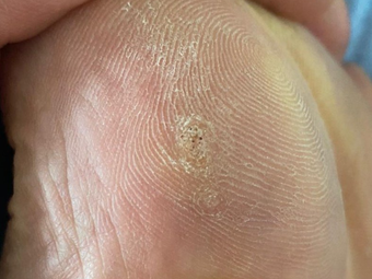 Also known as a Plantar Wart, it normally appears on the soles of the feet as localized thickness and infection in the outer layer of the skin.
