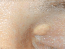 Xanthelasma has yellow appearance and contains cholesterol pocket underneath the skin.