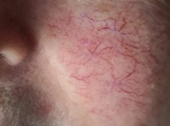 Facial red capillaries also known as telangiectasia or broken capillaries are small dilated blood vessels on the skin surface. They normally appear on the cheeks, nose or the chin areas, but can be found on the legs as well.